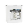 - Acrylic wash cup with white handle; sturdy and clear acrylic construction