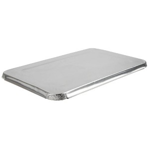 These full size aluminum lids are designed to cover matching aluminum pans securely, helping retain heat and protect food during storage or transport. Durable and easy to crimp for a snug seal.
