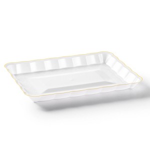 Product Name: White and Gold Rectangular Serving Tray with Scalloped Edge - 4 Count