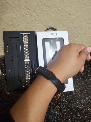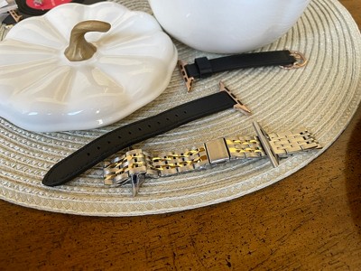 [This review was collected as part of a promotion.] I think these watch straps are cute and functional, but the chain link band is challenging to adjust for your wrist (as are most chain link bands though). I don't love the black leather—it's nice but I just don't find myself reaching for it as much.