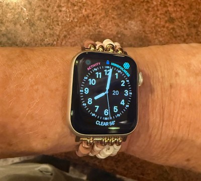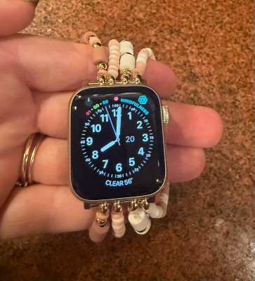 [This review was collected as part of a promotion.] I've been wearing this watch band with my Apple Watch daily for about a month and have been super happy with it! It's super cute and colorful and I've received a ton of compliments. It also seems like it's great quality. I clean it daily with rubbing alcohol and it has held up great. The only downside, and it's minor, is sometimes the beads pull my arm hair (lol). Overall I highly recommend it!