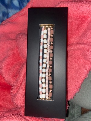 [This review was collected as part of a promotion.] I like that this band looks more like bracelets, rather than a watch band. It was easy to put onto my watch and the band is stretchy so it's easy to put it on my wrist and off. My only issue is that it pinches my arm hair, but I often have that problem with other stretchy bracelets.