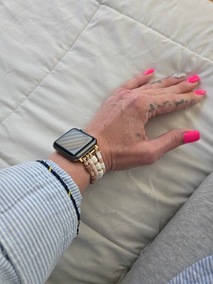 The Emily band for Apple Watch® is the finishing touch your wrist stack has been waiting for. Crafted with neutral-tone beads and gold plated stainless-steel accents, this band was made to feel like a perfectly curated bracelet stack. Made with elastic for an effortless, universal fit.