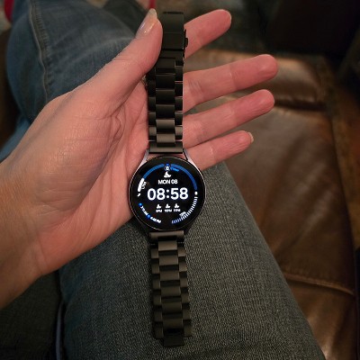 [This review was collected as part of a promotion.] It's easy to class up your smartwatch with this lightweight, durable, watch band. It's easy enough to switch between bands to wear your watch during different occasions while tracking your health and looking good. The metal is light enough weight that it's easy to forget that I even have a watch on. I only give it 4 stars because the metal has a matte finish and I prefer a shinier finish.