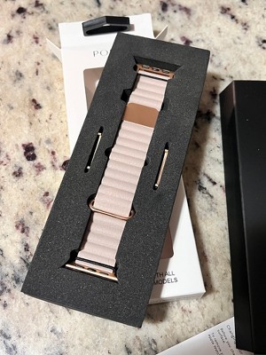 [This review was collected as part of a promotion.] Posh tech sent me this free sample of Magnetic Leather Band for Apple Watch - Khaki, in exchange for my honest review. I received this Apple Watch band a few weeks ago and have been using it everyday since. It's a beautiful khaki color that pairs well with any outfit. The band itself is quite long so it will fit mostly everyone. The installation was simple and easy and it came with additional attachments for the different size watches. Overall it is very comfortable and the magnetic closure is great as it doesn't budge all day. I will say that it does take some time adjusting to get it tight on my wrist since it is magnetic. Overall it's great!