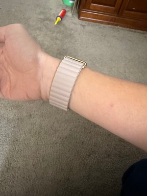 [This review was collected as part of a promotion.] This watch band is very cute and very stylish, but left me disappointed. I dont know why but eve though it fits and it works as it should. If you pull just a little too hard the band comes apart. Either the magnet isnt strong enough or the band doesnt lock into place. I love the beige color it is perfect and the overall look over the ribbed band is really cute. The band also has a softness to it that I liked, as well.