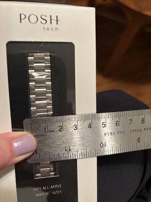 This band is actually 1.5 cm wide, not 2 cm as listed. The one photo in the ad is also useless for guessing the size because it's taken from an angle and the watch band isn't shown on a wrist. This is the third band I've ordered from Target that lists the wrong width or no width—a complete waste of my time and shipping resources to now return all of them. Also a 2-star rating on a watch band that might be perfectly fine if I just knew what I was getting.