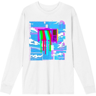 Positive Vibes Cloudy Forest Landscape Seek Adventure Seek Joy Crew Neck Long Sleeve Adult Tee-Large-White