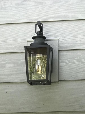 - Textured black finish over steel construction. Clear glass. Wet location rated for outdoor use in areas that receive full exposure to rain and weather.