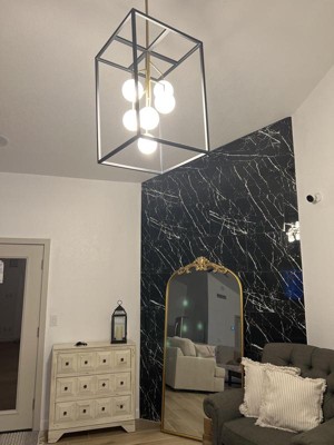 Possini Euro Design Alter Black Gold Pendant Chandelier 14 1/4" Wide Modern LED Frosted Glass 6-Light Fixture for Dining Room