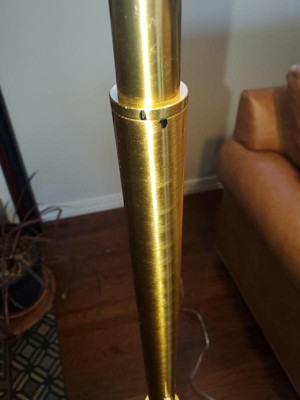 Love this lamp. Needed something a little different for a corner I'm was trying to fill. This lamp is perfect. Came packaged very well, the lamp is heavy. I thought the gold would be overwhelming but it's NOT at all. Perfect fit for my living room.