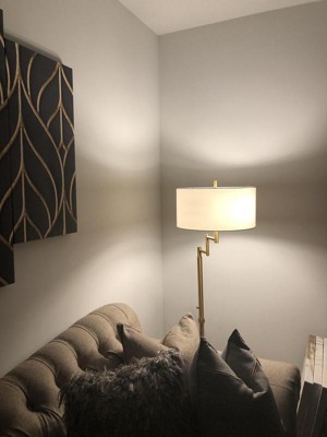 Possini Euro Design Artisan Swing Arm Floor Lamp 62.25" Tall Warm Antique Brass Linen Drum Shade for Living Room Reading Bedroom Office