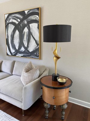 Possini Euro Design Athena Modern Buffet Table Lamp 35 1/2" Tall Sculptural Gold Leaf Black Drum Shade Bedroom Living Room Bedside Nightstand Office