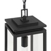 From Possini Euro Design brand of lighting, this outdoor hanging light offers clean lines and a crisp matte black finish. The modern profile features sturdy, die-cast construction and a lantern silhouette with squared corners for a precise look and feel. Clear glass panels keep the bulb (not included) in view, perfect for adding character to outdoor areas. A versatile design that works well adorning your main entryway or patio space.