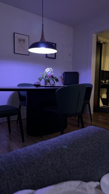 Size and modern look was perfect for our kitchen bar, installed in less than 30 minutes. The shape spreads out the lighting making it perfect for morning coffee and evenings.