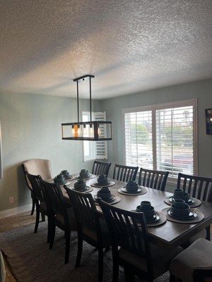 Love this pendant light in my kitchen. The wood matches my island trim. It is incredibly bright for cooking and cleaning and with a dimmer switch in the lowest setting, it adds to evening charm in adjoining dining room. Also, the electrician who installed it said it was a cool light.