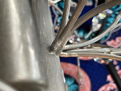 I am so disappointed. I looked at this for weeks, did the "room view", read the reviews of this and its larger cousin (both colors) and I can't figure out why the reviews are so good. Mine was not silver metal as shown in the pictures. The section that holds the lights and crystals is dark metal that is spray painted in a grey finish not even remotely silver, imo. You can see the chipping and blotchy paint around the joints and the bottom piece looks like it has touch up paint on it or maybe someone forgot to finish the silver color and mine came with just a primer paint. Either way, I didn't want to chance a replacement. I really wanted to love this light. It is big and heavy (which I wanted) and it would be beautiful if it were actually silver like the pictures and didn't have paint damage.