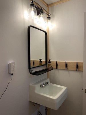 Love these light fixtures. We combined metals with all of the fixtures in our bathroom remodel and this light has the perfect amount of black and chrome bringing everything together. Looks amazing.