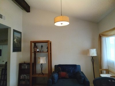 We purchased this pendant style light for an office area with a vaulted ceiling. I works perfectly for us putting a lot of light on the white ceiling and a more filtered light on the desk and work area so there is no eye strain from too-bright light.