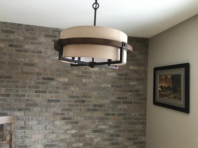 Overall, I love this light. I was surprised when it wasn't carried in the store, because it fits perfectly in our modern Spanish style home. My only complaint is that it came with some scratches on the wood.