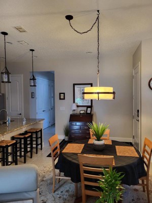 Love the light fixture in our dining room. It fits perfectly. We added a dimmer and the shade looks really nice at night when the lights are dimmed low.