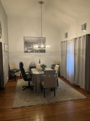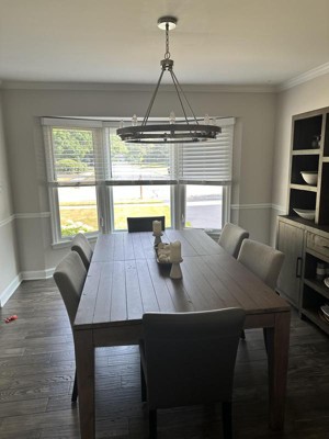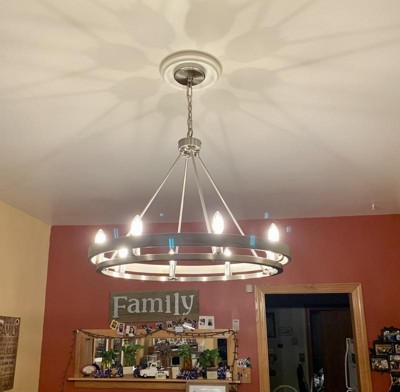 Very pretty chandelier in my new kitchen! Even though the measurements are in the description, this lighting fixture looked huge when it arrived. It looks perfect over my 96" long table! Can't wait to have our first family get together in our new bigger space!