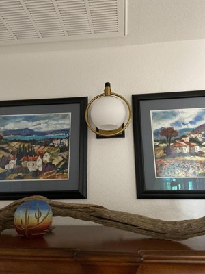 Possini Euro Design Carlyn Modern Wall Light Sconce Warm Brass Black Hardwire 8" Fixture Milky White Globe Glass for Bedroom Bathroom Vanity Reading