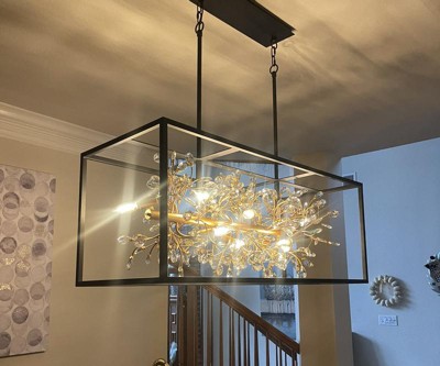 Gorgeous light. Was the crowning touch on our renovations. We put ours over ours in the dining room. We got the matching pendants for the kitchen bar Excellent price for what you get.