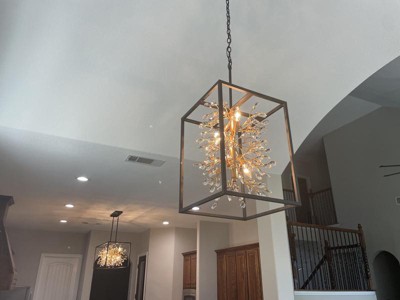 This pendant is absolutely beautiful! I originally purchased this for my entry way but when it arrived I determined it would be perfect above the kitchen table. At night, the crystals sparkle so well and case little prisms on the ceiling. It is truly a gorgeous light in person! I plan to install the semi-flush version of this light in the entryway.