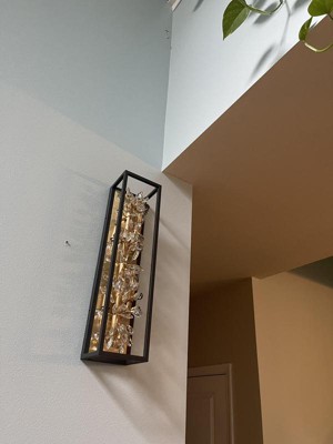 Possini Euro Design Carrine Modern Wall Light Sand Black Gold Plated Hardwire 24" 4-Light Fixture Clear Crystal for Bedroom Bathroom Vanity Reading