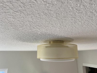 Possini Euro Design Ceiling Light Semi Flush Mount Fixture 12 1/2" Wide Plated Gold 2-Light Sheer Fabric Outer Opal White Glass Drum Shade for Bedroom