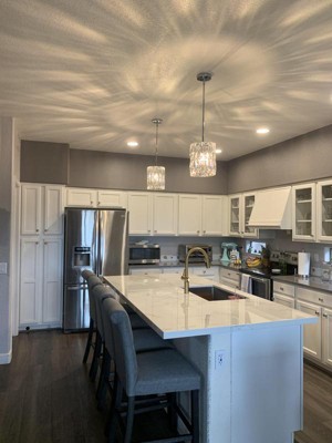 Glamorous crystal pendants! Looks really great in my kitchen and have gotten lots of compliments.