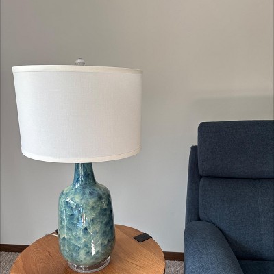 Possini Euro Design Collin Modern Table Lamp 26 3/4" High Blue Ceramic Off White Drum Shade for Bedroom Living Room Bedside Nightstand Office Kids