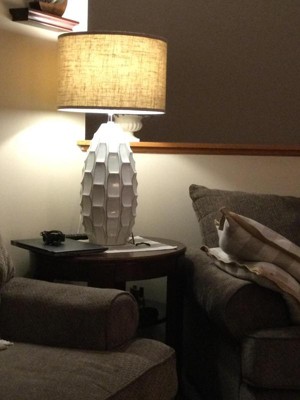 I purchased this lamp 4 years ago just prior to moving to my new house. So glad I did! It was perfect! I then bought 2 more that had different textures, shapes and heights but same color and similar shades. I’ve had many compliments on the trio.