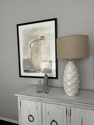 Possini Euro Design Cosgrove Modern Mid Century Table Lamp 32 3/4" Tall White Glazed Ceramic Beige Fabric Drum Shade for Bedroom Living Room Bedside