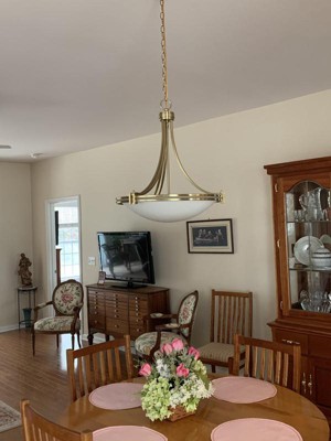 This is a beautiful fixture. We wanted simple & elegant in our open concept living/ dining room. The white glass shade is perfect with our white kitchen behind the dining room.