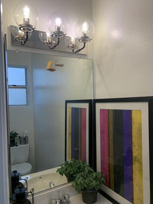 Possini Euro Design Fairling Modern Wall Light Polished Nickel Hardwire 24" 3-Light Fixture Clear Glass Globe for Bedroom Bathroom Vanity Reading Home