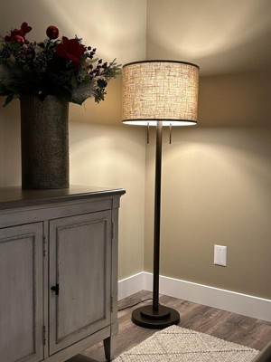Oil rubbed bronze floor lamp with burlap fabric shade