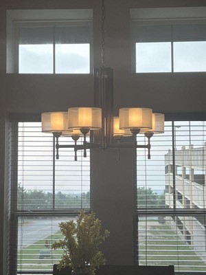 I just had this chandelier installed. It is absolutely beautiful!!! When I opened the box I thought that possibly the shades were too large but the shades are perfect!!! I absolutely love it!!