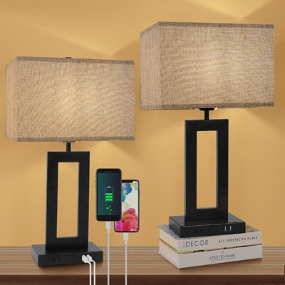 Possini Euro Design Gossard Modern Industrial Table Lamp 30" Tall Bronze with USB Charging Port White Rectangular Shade for Bedroom Living Room Office