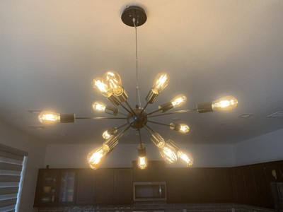 I love this chandelier, it brightened up my dining room and added a level of sophistication to it. A bonus feature are the way the light bulbs add decor to the room when lit, especially on a dimmer. One thing to note is to ensure you pull the cord up to your desired level, not leaving too much slack before securing to ceiling. Otherwise totally pleased!