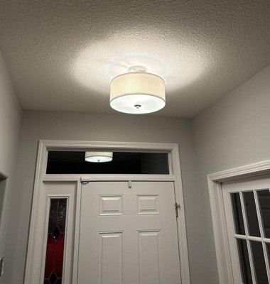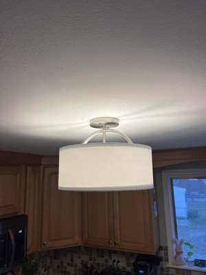 Possini Euro Design Halsted Modern Ceiling Light Semi Flush Mount Fixture 15" Wide Brushed Nickel 2-Light Oatmeal Linen Drum for Bedroom Living Room