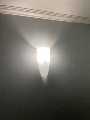 Sconce provides great white defused light, is well made and easy to install.