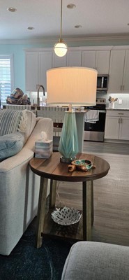 Possini Euro Design Jaime Modern Table Lamp 26" High Blue Gray Art Glass White Drum Shade for Bedroom Living Room Bedside Nightstand Office Kids House