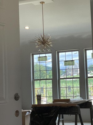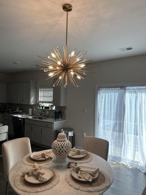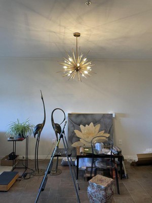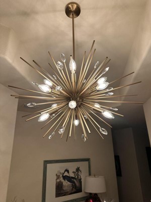 Show stopper. I looked at several for a Sputnik style lights before deciding on this one, and it did not disappoint. This fixture is George ours. It has a lot of pierces and does require assembly, but the directions were clear. My husband and I had f fun putting this together. Can't wait to hang it in my new home!!