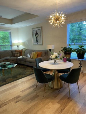 This chandelier is a stunning addition to any space, offering a modern flair that complements both contemporary and traditional decor. Guests appreciate its elegant design and the bright light it provides, making it a perfect centerpiece for dining rooms, entryways, and more. While assembly can be a bit challenging, many guests find it manageable, especially with some patience. Overall, this light fixture transforms rooms into stylish and inviting areas.