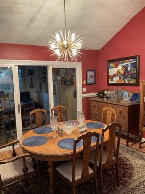 Starburst light pendant for my breakfast table. It's a statement piece with a little glam. The spokes were tedious to put together so have some patience, follow the diagram.