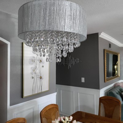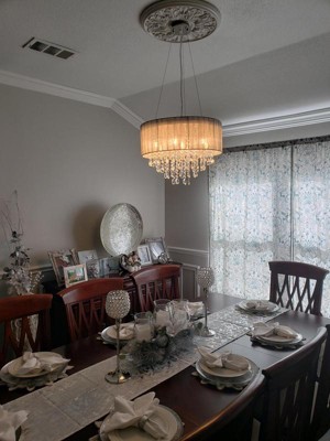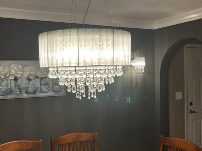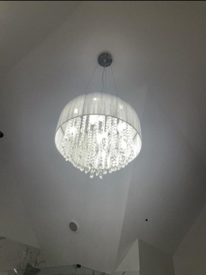 This chandelier is gorgeous! It’s completely transformed my dining room into a modern, elegant room. Make sure you have a pair of needle nose pliers to hang all the crystals. It will make it much easier. I didn’t give it 5 stars because of the lack of useful instructions and the fact the clip to adjust the length of one of the cables didn’t work. A replacement was promptly sent to us.