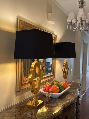 I wanted a lamp that was gold and black, with a rectangular shade, lined in gold. It was for my entrance hall so I wanted it to be really eye catching. I got it ALL in this lamp! I've never seen one like it. And it gives such lovely light because of the gold lined shade. In an earlier review, someone wondered if this lamp gives enough light. It holds up to a 150 watt bulb, which is pretty bright. But, I wanted ambient, subtle light, so I used a bulb with less wattage. My only "problem" with this lovely lamp is the color. It IS gold, but perhaps a bit TOO gold! I wanted a brass sort of gold, and the base is more of a reddish-gold. It isn't overwhelming, and maybe you wanted a reddish-gold color anyway! To be honest, it's a bit more than I usually pay for a lamp! It's NOT to much for a good looking lamp. It's just that I'm one of those shoppers who looks for months until I find it for less! But, when I found this jewel, I knew I had to get it and forget "shopping around." Thank you, Lamps Plus!