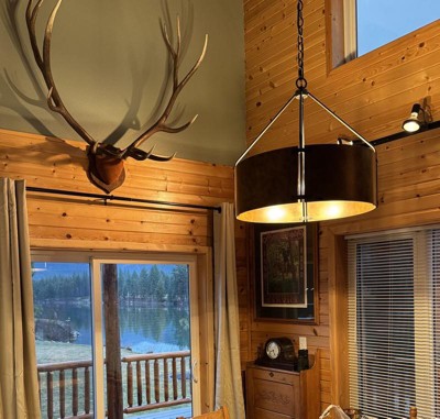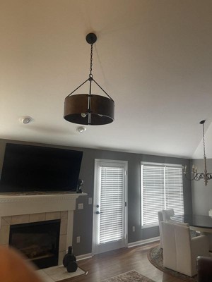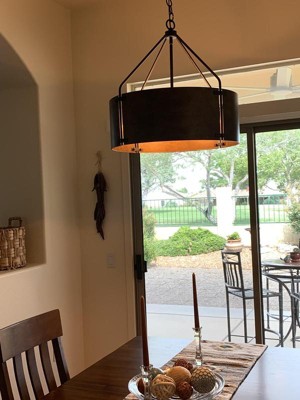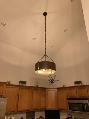 This Possini modern rustic drum-style light makes a statement. We recently remodeled our kitchen, and the light nicely integrates the kitchen and dining area. We used a dimmable smallish elongated bulb instead of a more traditional bulb to tone down the brightness in this four-bulb open drum light. We are pleased with our purchase. Note- the light is heavy and not a one-person job from my perspective. The contractor working on our kitchen helped with the installation and commented on the quality of the light fixture!